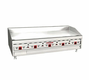 A powerful and efficient cooking solution, the Magikitch’n MKG-60 Countertop Gas Griddle 60″ is an excellent addition to busy concession stands or restaurants. Featuring ten all stainless burners, this product provides even heating across its heavy 1″ thick griddle plate. Equipped with snap action thermostat controls, you can quickly manipulate the settings of each burner between 200°F and 450°F. This snap action T-stat is combined with a recessed Piezo spark igniter for easy push button ignition to light the pilot.