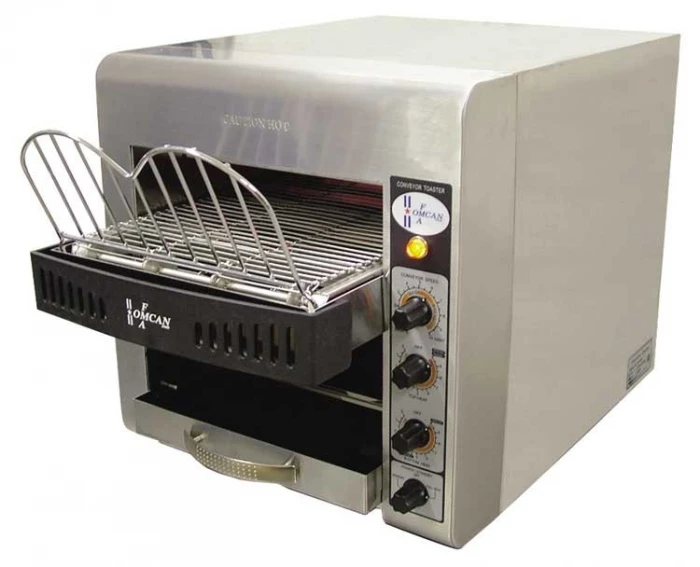Perfect for breakfast bars, cafes, or diners, the Omcan (FMA) 11385 Conveyor Oven with 10″ Conveyor Belt is both effective and highly efficient. This product boasts infrared heaters that toast up to 300 slices her hour and fits 2 slices side-by-side on its 10″ conveyor belt, allowing you to keep up with orders even during busy hours. Designed with a 1-1/2″ opening, this unit accommodates anything from thin slices of bread to bagel halves.